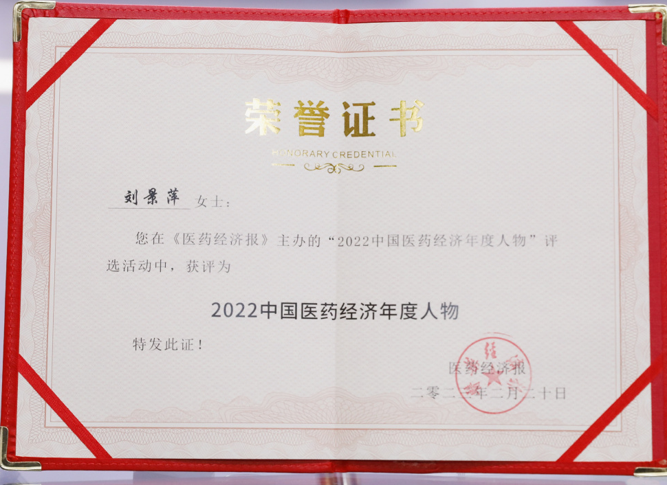 PG电子药业集团董事长刘景萍当选“2022中国医药经济年度人物”